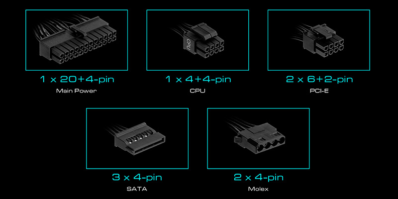 Nguồn máy tính Gamdias AURA GP550 550W PSAURAGP550GA đi kèm với hệ thống cáp đầy đủ, đáp ứng nhu cầu kết nối của hầu hết các linh kiện máy tính hiện nay. Các dây cáp được bọc lưới chắc chắn, giúp tăng độ bền và chống rối. Việc lắp đặt bộ nguồn cũng rất dễ dàng nhờ vào thiết kế thông minh và hướng dẫn chi tiết đi kèm.