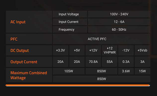 Bảng Công suất Gigabyte UD850GM PG5