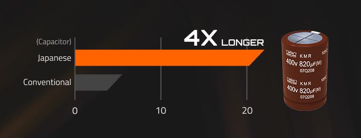 Tụ điện theo tiêu chuẩn Nhật Bản Nguồn máy tính Gigabyte UD850GM PG5 trang bị các tụ điện chất lượng cao của Nhật Bản để tạo ra hiệu suất hiệu quả và đảm bảo độ tin cậy lâu hơn. |