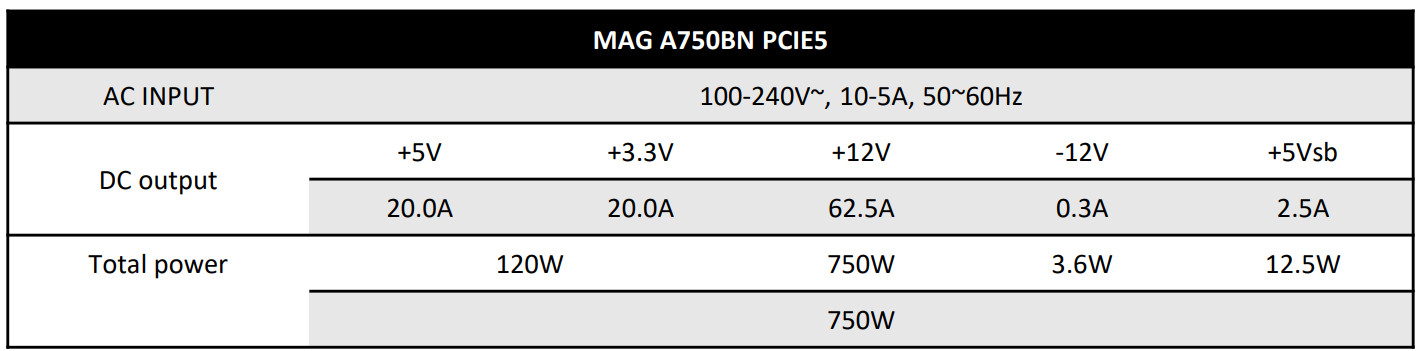Bạn đang quan tâm đến Nguồn máy tính MSI MAG A750BN PCIE5 750W 80 Plus Bronze MAG-A750BN-PCIE5? Đang còn đang băn khoăn chưa biết có nên mua sản phẩm hay không? Liên hệ MemoryZone ngay để được tư vấn chi tiết!