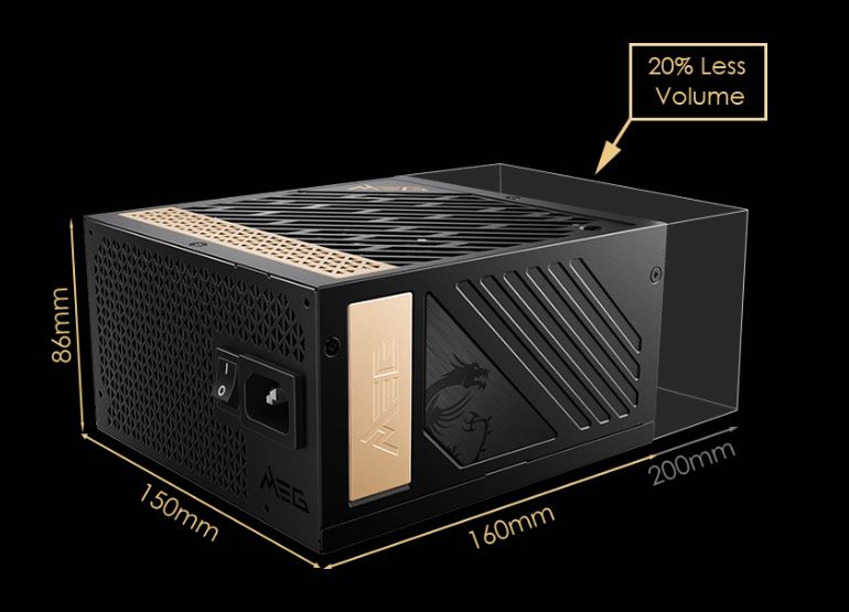 Thiết kế nhỏ gọn Nguồn máy tính MSI MEG Ai1300P PCIE5 có thiết kế nhỏ gọn chỉ dài 160mm và rộng 150mm giúp nó đảm bảo dễ dàng vừa vặn với hầu hết các thùng máy tính PC, giúp bạn tiết kiệm nhiều không gian hơn cho việc quản lý cáp và luồng không khí đến phần còn lại của hệ thống. |