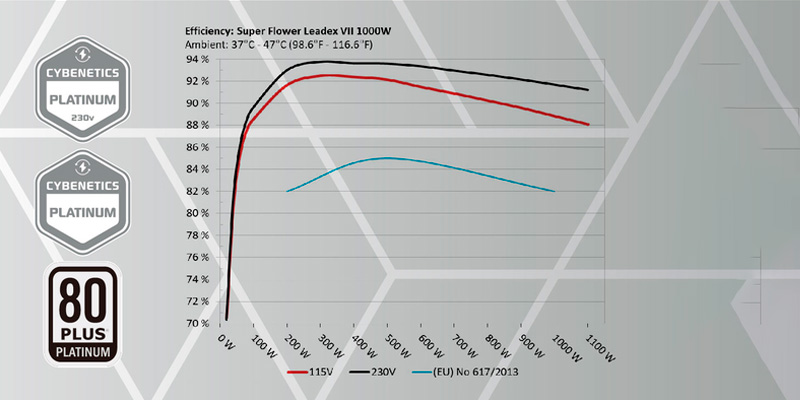Nguồn máy tính SuperFlower Leadex VII PRO 1200W ATX3.1 WHITE 80 Plus Platinum SF-1200F14XP-WH mang lại hiệu năng vượt trội với công suất thực 1200W, đạt chứng nhận 80 Plus Platinum với hiệu suất 90% ở tải 20%, 92% ở tải 50% và 89% ở tải 100%. Nhờ đó, hệ thống luôn vận hành ổn định, tiết kiệm điện năng và giảm thiểu tỏa nhiệt, phù hợp cho các dàn PC gaming khủng và workstation chuyên nghiệp.