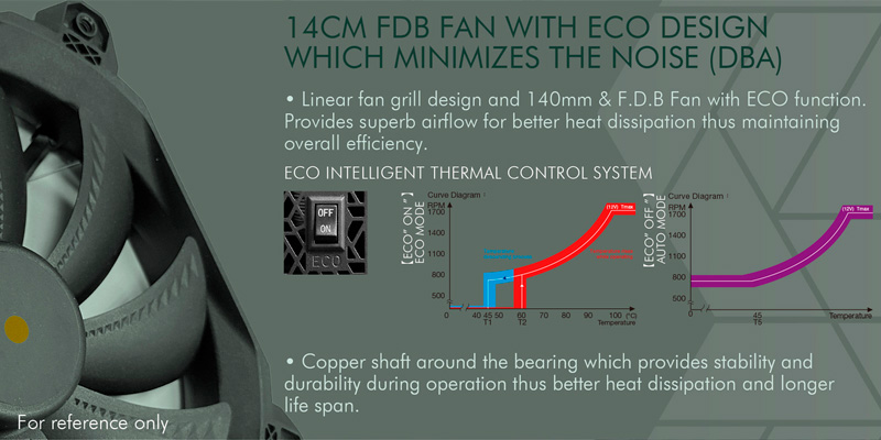 Quạt 140mm FDB êm ái, công nghệ ECO Fan thông minh