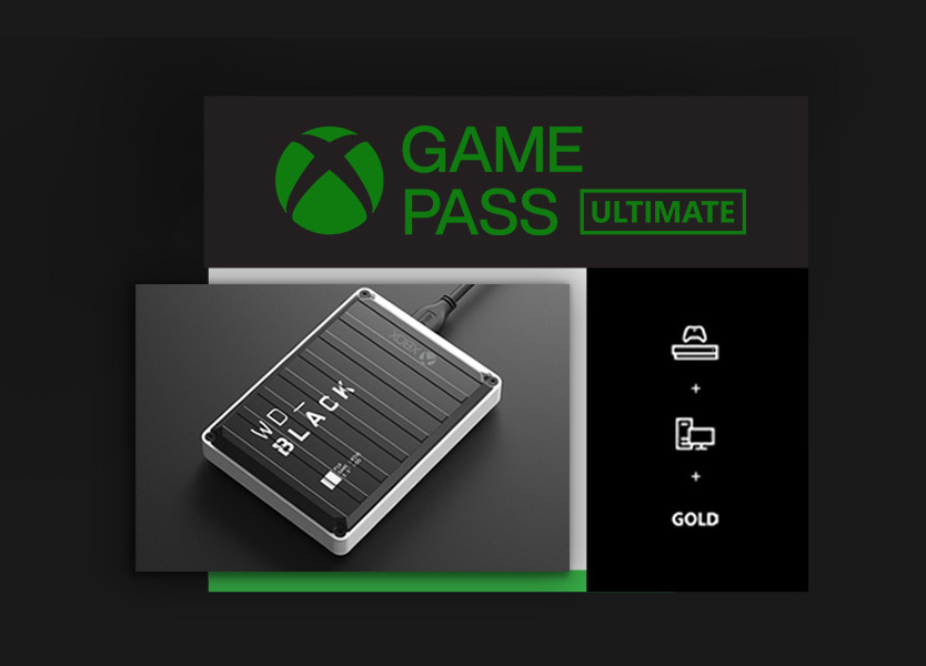 3 tháng miễn phí Xbox Live Gold Ổ cứng để bàn HDD WD Black D10 Game Drive for Xbox đi kèm 3 tháng miễn phí dịch vụ Xbox Game Pass Ultimate, bao gồm quyền truy cập vào hơn 100 Games trên cả Xbox và PC của bạn cũng như Xbox Live Gold. |