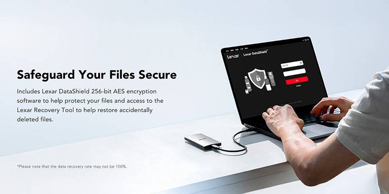 Để đảm bảo tính riêng tư và an toàn cho dữ liệu quan trọng, sản phẩm đi kèm phần mềm Lexar DataShield™ hỗ trợ mã hóa AES 256-bit, giúp bảo vệ file cá nhân, dữ liệu tài chính hoặc thông tin dự án khỏi truy cập trái phép. Bên cạnh đó, phần mềm Lexar Recovery Tool cũng được tích hợp, hỗ trợ người dùng khôi phục các file bị xóa nhầm với tỷ lệ thành công cao. Đây là bộ đôi tính năng cực kỳ giá trị cho những ai thường xuyên làm việc với dữ liệu quan trọng và không muốn rủi ro về bảo mật. Với các tính năng bảo mật mạnh mẽ, Lexar ES3 không chỉ là công cụ lưu trữ mà còn là “két sắt số” cá nhân của bạn.