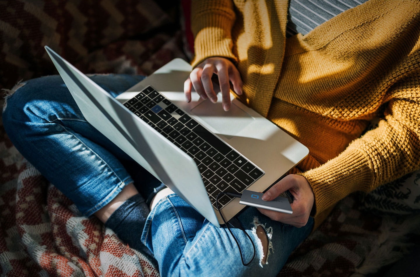 Khả năng tương thích đa thiết bị Ổ cứng di động SSD Samsung T7 Touch truy cập tập tin của bạn mọi lúc, mọi nơi. T7 Touch tương thích với PC, Mac, thiết bị Android, máy chơi game, v.v. Bao gồm trong hộp là cáp USB loại C-to-C và loại C-to-A để thêm phần thuận tiện. |