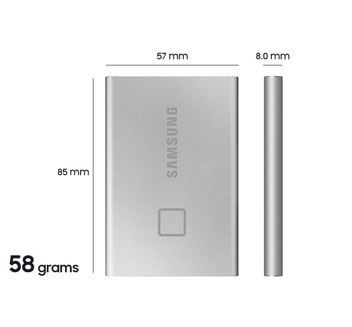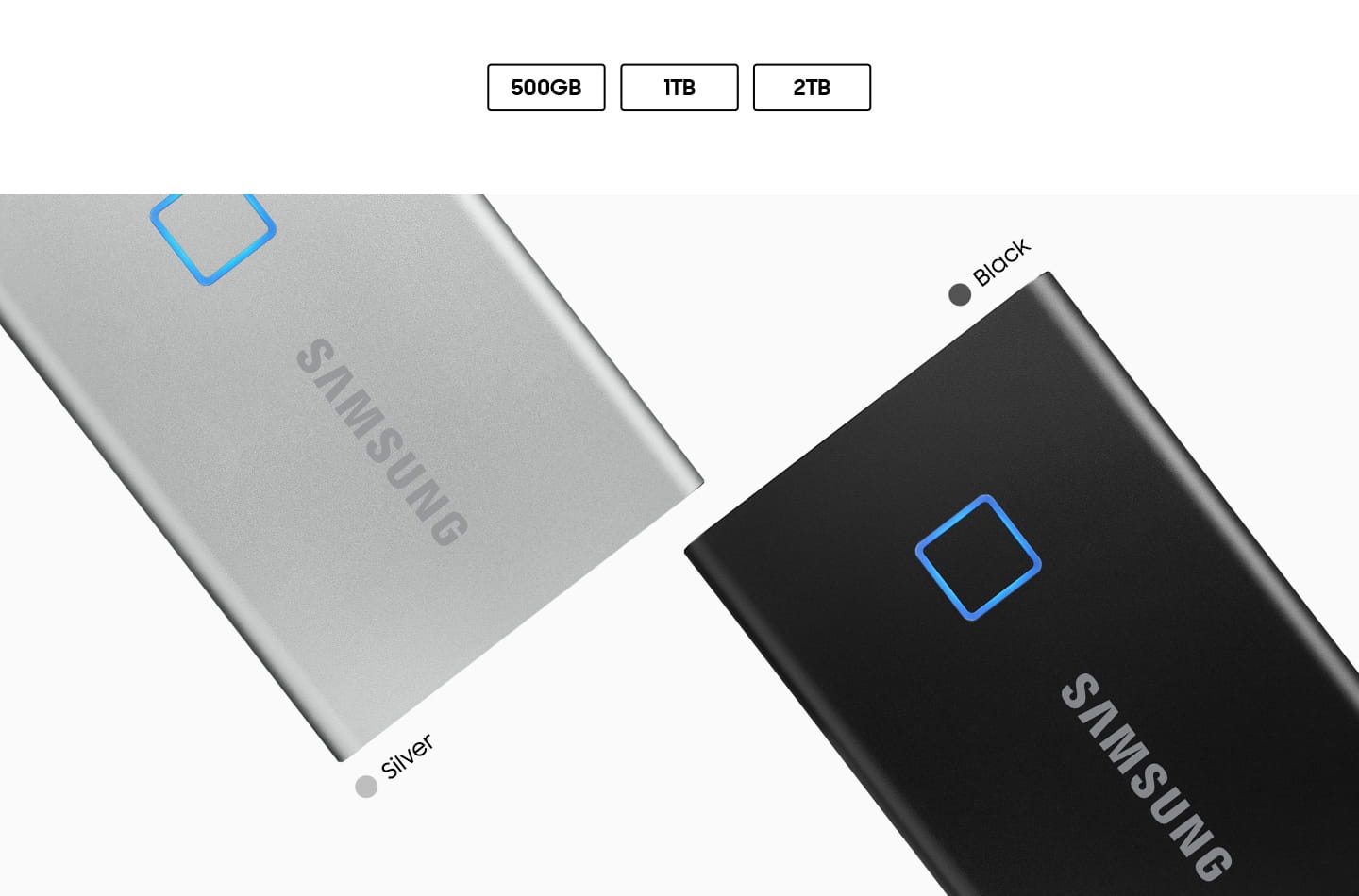 Hệ thống đèn led chuyển động độc đáo Ổ cứng di động SSD Samsung T7 Touch có hình vuông LED chiếu sáng để thông báo cho bạn biết SSD của bạn đang làm gì trong nháy mắt. Chọn từ màu đen cổ điển hoặc màu bạc thời trang, với ba dung lượng phù hợp với nhu cầu của bạn: 500GB, 1TB hoặc 2TB.