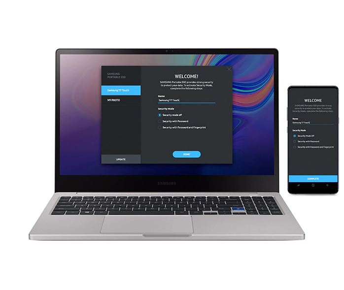 Phần mềm quản lý -Samsung Portable SSD Ổ cứng di động SSD Samsung T7 Touch được tích hợp phần mềm nâng cấp cho PC và Mac để giúp bạn thiết lập mật khẩu và dấu vân tay và nhận các bản cập nhật firmware mới nhất. Bạn cũng có thể tải xuống ứng dụng di động cho điện thoại thông minh và máy tính bảng Android. |