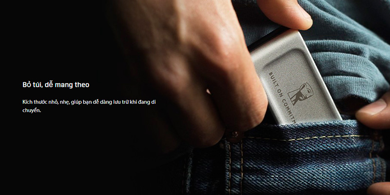 Sự tiện lợi của Kingston XS2000 nằm ở thiết kế rất nhỏ gọn với kích thước chỉ 69,54 x 32,58 x 13,5mm và trọng lượng siêu nhẹ chỉ 28.9g, lý tưởng để mang theo bên mình mọi lúc mọi nơi. Bên cạnh đó, sản phẩm còn đi kèm vỏ cao su bảo vệ, giúp chống trơn trượt và giảm thiểu hư hại do va chạm. Vỏ ngoài được chế tạo từ kim loại kết hợp nhựa cao cấp, không chỉ tăng tính thẩm mỹ mà còn đảm bảo độ bền chắc chắn khi sử dụng lâu dài. Bạn có thể an tâm bỏ vào túi xách, ba lô hay túi quần mà không lo cồng kềnh. Với thiết kế tối giản và tiện dụng, đây là một ổ SSD di động lý tưởng cho những người làm việc trong môi trường linh hoạt, di chuyển nhiều.