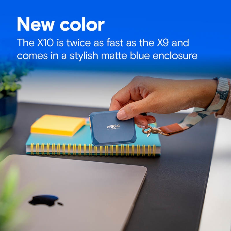 Không chỉ mạnh mẽ về hiệu năng, Crucial X10 còn ghi điểm nhờ thiết kế cực kỳ nhỏ gọn và bền bỉ. Với kích thước chỉ 65 x 50 x 10mm và trọng lượng 38g, bạn dễ dàng bỏ túi hoặc đeo theo bên người mà không hề cảm thấy vướng víu. Vỏ ngoài được làm từ hợp kim nhôm anodized với lớp phủ cao su mềm, vừa sang trọng vừa bảo vệ tốt trước va đập. Sản phẩm đạt tiêu chuẩn IP65, có khả năng chống bụi và nước nhẹ, đồng thời chống rơi từ độ cao lên đến 3 mét, giúp bảo vệ dữ liệu an toàn ngay cả khi hoạt động ngoài trời hay trong môi trường khắc nghiệt.
