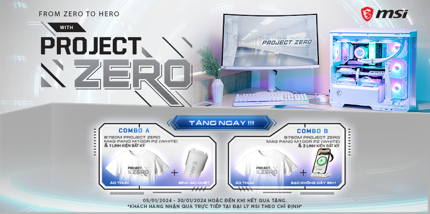 Chương trình áp dụng cho khách hàng build PC MSI tại Memoryzone, khi mua combo Project Zero bao gồm: