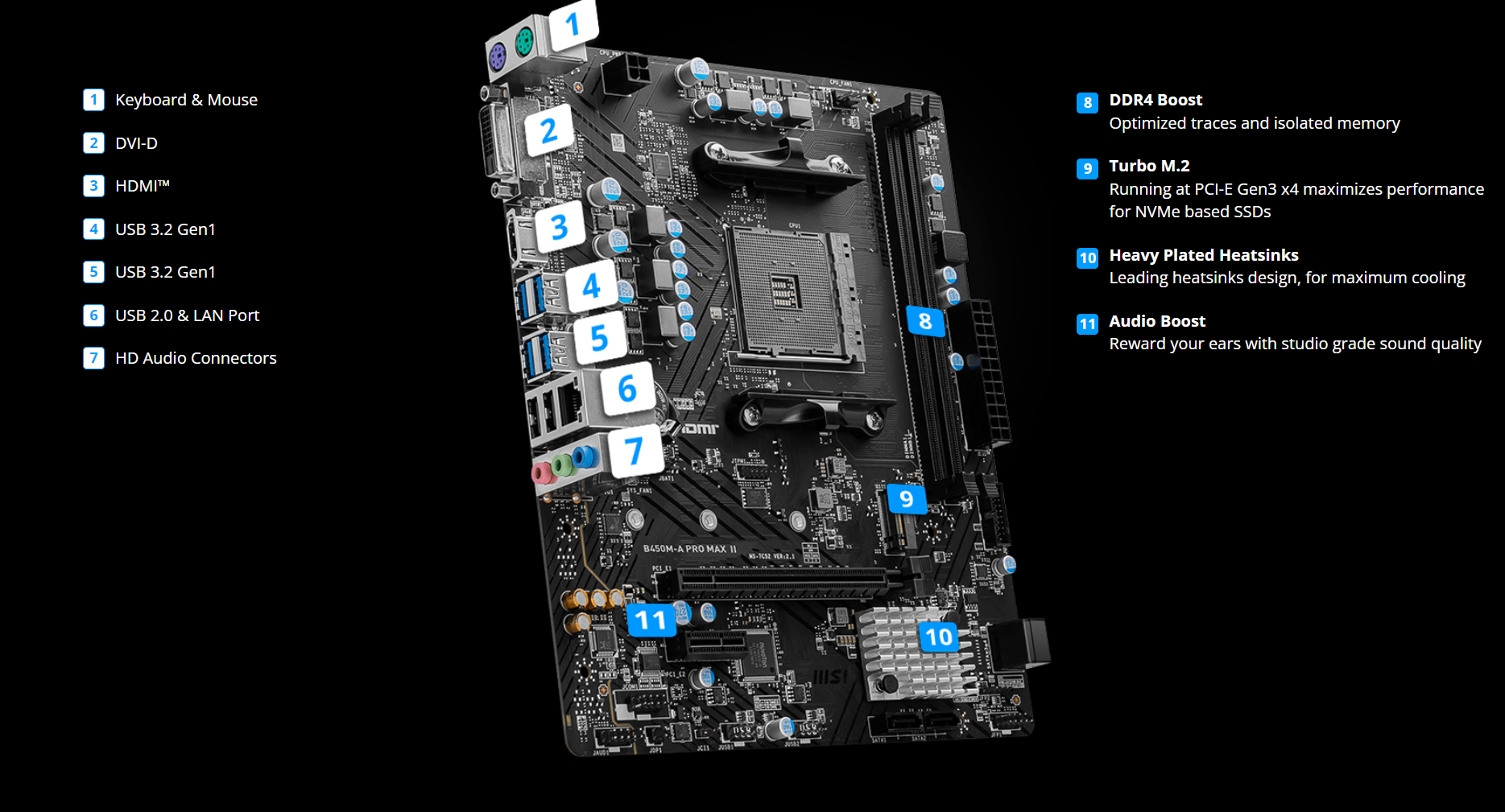 Mức tiêu thụ điện năng thấp Máy được trang bị bộ nguồn đến từ thương hiệu MSI. Nguồn máy tính MSI MAG A500N-H 500W MAG-A500N-H hiệu suất ổn định êm ái, giúp máy hoạt động liên tục bền bỉ. Đến lúc bạn muốn nâng cấp thêm card đồ hoạ cho máy thì bộ nguồn này vẫn đáp ứng tốt với x1 đầu cấp nguồn 8(6+2) Pcie cho VGA. |