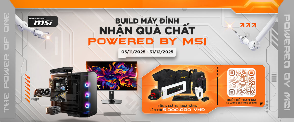 Chương trình khuyến mãi POWERED BY MSI chính thức khởi động từ 05/11/2025 đến hết ngày 31/12/2025 hoặc đến khi hết quà tặng.