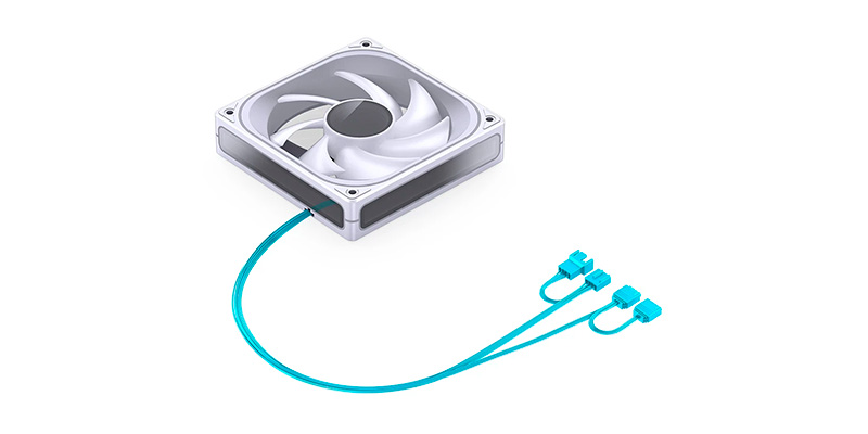 Sản phẩm được trang bị 2 đầu cắm: PWM 4-pin cho quạt và ARGB 3-pin 5V cho LED, tương thích với các hub điều khiển hoặc mainboard có hỗ trợ đồng bộ ánh sáng. Công suất tiêu thụ thấp chỉ 2.4W cho quạt và 3.55W cho LED, giúp tiết kiệm điện năng nhưng vẫn đạt hiệu quả tối đa. Dây dẫn dài, bố trí gọn gàng giúp dễ dàng đi dây và giấu dây trong hệ thống case, kể cả khi gắn nhiều quạt cùng lúc.