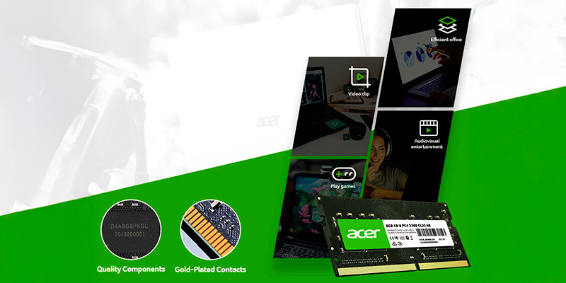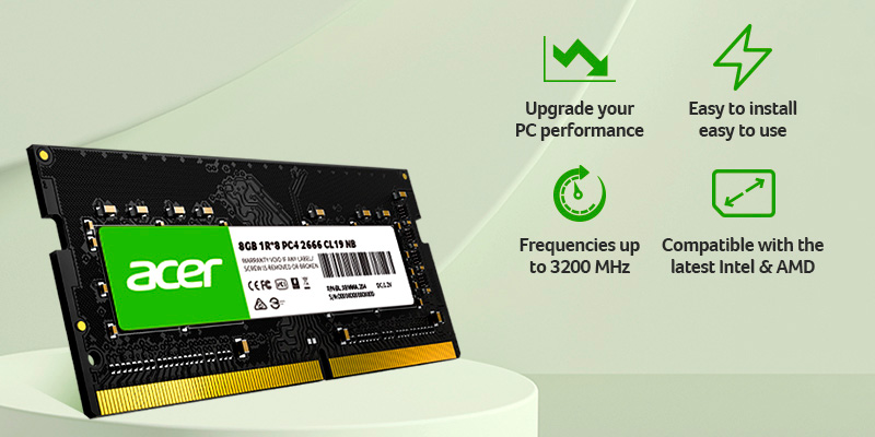 Ram Laptop Acer SD100 DDR4 16GB 3200MHz 1.2V SD100-16GB được thiết kế theo chuẩn SODIMM 260 pin nhỏ gọn, phù hợp với hầu hết các dòng laptop hiện nay. Người dùng có thể dễ dàng tháo nắp và lắp đặt chỉ trong vài phút, không cần kỹ năng kỹ thuật chuyên sâu. RAM tương thích hoàn hảo với các nền tảng Intel và AMD mới nhất, cũng như nhiều dòng bo mạch chủ từ các thương hiệu phổ biến như ASUS, MSI, Gigabyte hay Lenovo.