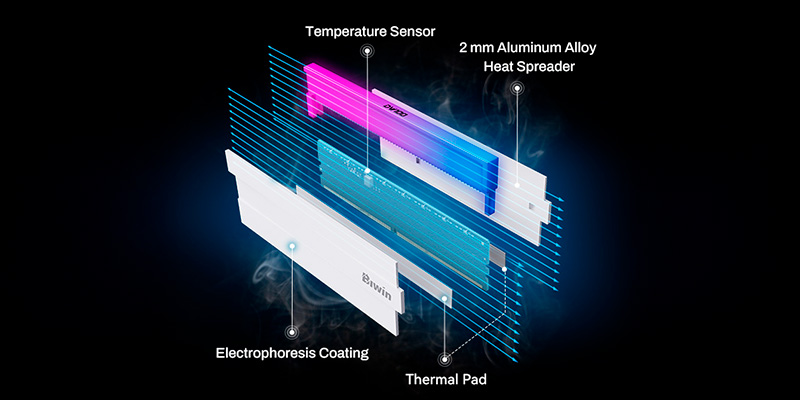 Được trang bị heatsink nhôm cao cấp, RAM Biwin DW100 RGB giữ nhiệt độ luôn ở mức ổn định ngay cả khi vận hành ở tốc độ cao. Thiết kế tản nhiệt tối ưu giúp giải phóng nhiệt hiệu quả, hạn chế tình trạng quá nhiệt ảnh hưởng đến hiệu suất hệ thống. Bên cạnh đó, thiết kế PCB nhiều lớp giúp giảm nhiễu tín hiệu, tăng cường độ ổn định khi hoạt động lâu dài. Đây là một yếu tố quan trọng đảm bảo cho hệ thống vận hành bền bỉ, đặc biệt trong môi trường sử dụng cường độ cao như chơi game, làm việc đồ họa hay xử lý dữ liệu lớn liên tục.