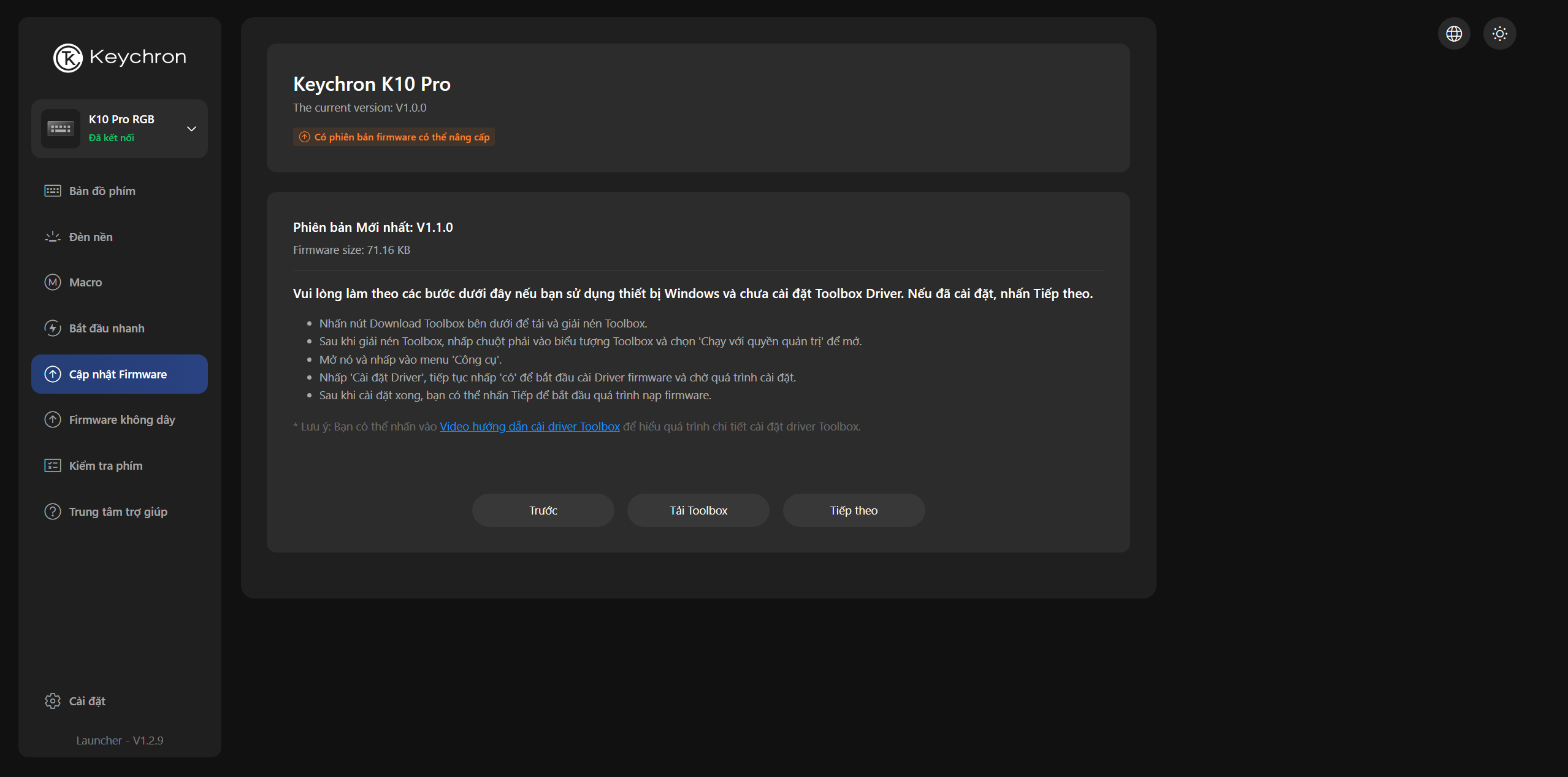 Trước đây, việc cập nhật firmware thường gắn với cảm giác khá “căng”: tải file, chạy tool, sợ lỗi. Nhưng trong Launcher, mọi thứ được tích hợp sẵn.