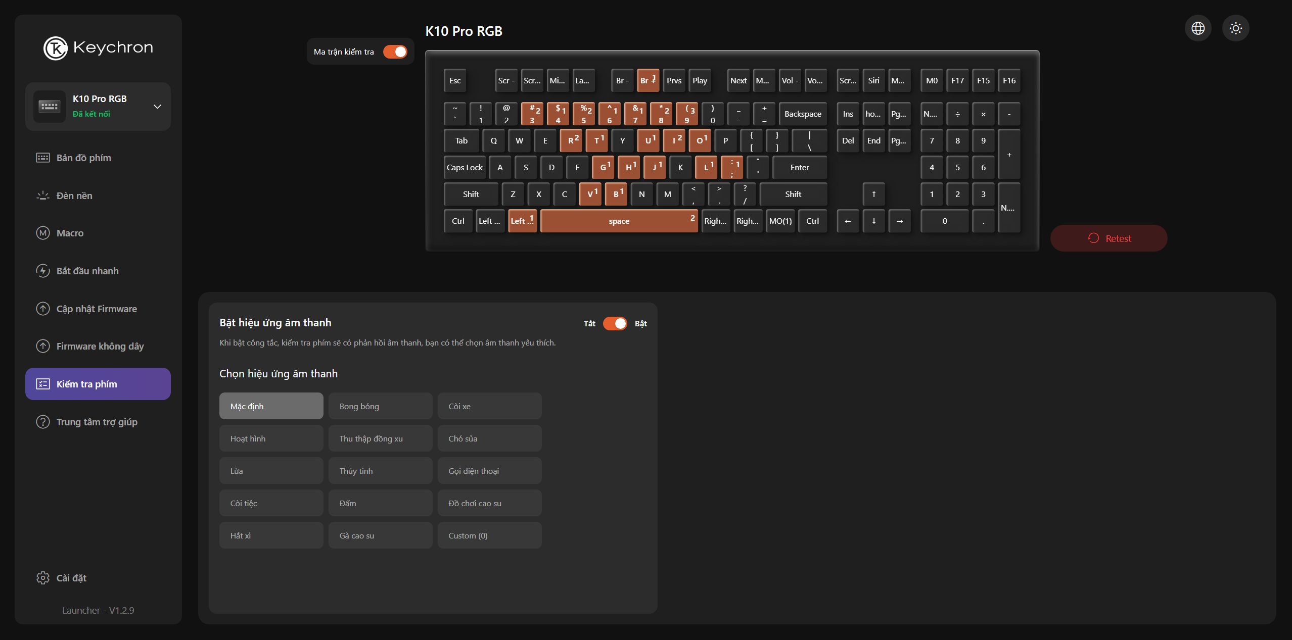 Nhờ đó, bạn có thể dễ dàng phát hiện phím nào không hoạt động đúng. Ngoài ra còn có hiệu ứng âm thanh vui nhộn, giúp việc test đỡ nhàm chán hơn.
