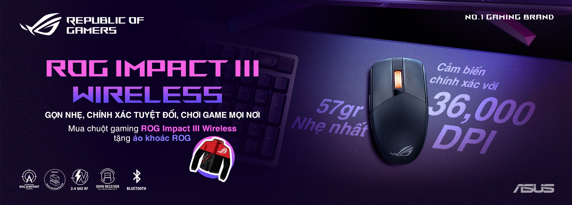 Mua chuột gaming ROG Impact III Wireless tặng áo khoác ROG phiên bản giới hạn