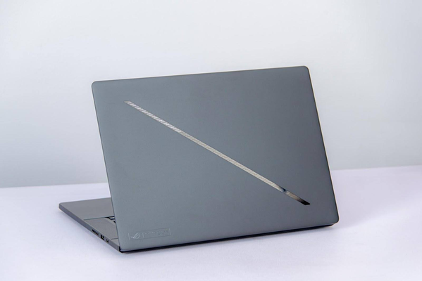 Tô điểm cho sự mỏng nhẹ là thiết kế thanh thoát, kết hợp cùng dải Slash Lighting trên nắp máy tạo nên điểm nhấn đầy cuốn hút – vừa mang đậm dấu ấn riêng của dòng ROG, vừa thể hiện sự cá tính và khác biệt. Không chỉ gây ấn tượng cho game thủ nhờ hiệu năng mạnh mẽ, ROG Zephyrus G16 sẵn sàng thu hút mọi ánh nhìn với thiết kế cao cấp sang trọng của mình.