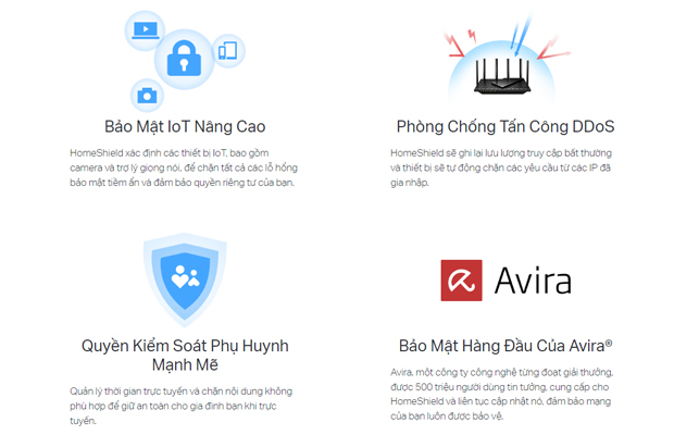 HomeShield bảo vệ tất cả các thiết bị đang được kết nối chống lại DDoS, các trang web độc hại và xâm nhập cổng, mang lại một môi trường mạng an toàn cho dữ liệu và quyền riêng tư của bạn.