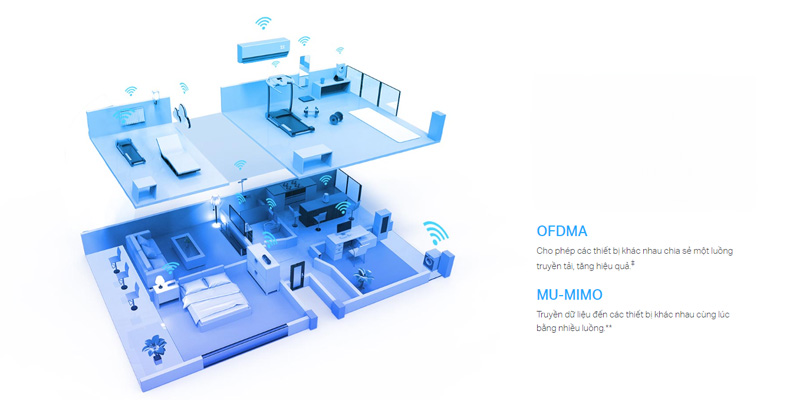 Công nghệ Wi-Fi tiên tiến mang đến tốc độ nhanh hơn, ít lag hơn và chịu tải cao hơn, cho phép nhiều kết nối đồng thời hơn trên mạng gia đình của bạn.
