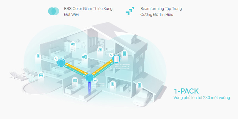 Được trang bị AI-Driven Mesh, Router WiFi Mesh TP-Link Deco X50 cung cấp WiFi thông minh theo bạn mọi lúc mọi nơi mà không bị gián đoạn. Nó tự động tìm hiểu môi trường mạng, chất lượng máy khách và hành vi của người dùng. Các thuật toán phức tạp giải thích cho các yếu tố khác nhau để Deco X50 cung cấp WiFi Mesh lý tưởng, duy nhất cho ngôi nhà của bạn. Di chuyển khắp mọi nơi trong nhà bạn và tận hưởng phát trực tuyến liền mạch ở tốc độ nhanh nhất có thể