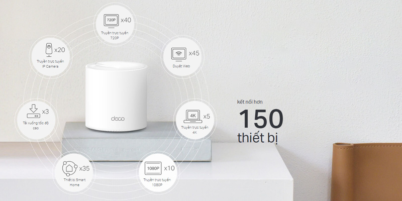 Được cải tiến bởi WiFi 6 với công nghệ OFDMA và MU-MIMO, Bộ phát WiFi Mesh TP-Link Deco X50 cho phép bạn kết nối hơn 150 thiết bị. Tận hưởng mạng hiệu quả hơn tải nhanh hơn mà không làm giảm hiệu suất.