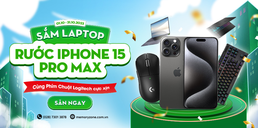 Còn chần chờ gì nữa, hãy ghé MemoryZone rinh ngày 1 chiếc Laptop trong khoảng thời gian từ 01/10 đến hết 31/10 để nhận được cơ hội tham gia vòng quay may mắn trúng thưởng 1 iPhone 15 Pro Max 256GB và những món quà hấp dẫn khác nhé!