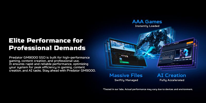 Sở hữu chuẩn thiết kế M.2 2280 single-sided, ổ cứng dễ dàng lắp đặt cho cả desktop, laptop hoặc mini PC sử dụng khe M.2 PCIe x4. Đặc biệt, do được thiết kế 1 mặt chip, SSD Acer Predator GM9000 2TB PCIe Gen5 x4 NVMe M.2 GM9000-2TB dễ dàng tương thích với các hệ thống mỏng nhẹ hoặc các khe M.2 có không gian hẹp. Sản phẩm cũng tương thích ngược với PCIe Gen4 và Gen3, cho phép sử dụng trên các hệ thống cũ hơn, chỉ cần nâng cấp mainboard sau này để tận dụng tốc độ Gen5. Người dùng có thể kết hợp ổ với tản nhiệt tích hợp trên bo mạch hoặc sử dụng riêng tản Graphene mỏng đi kèm nhằm tối ưu nhiệt độ trong các tác vụ tải nặng mà không gây quá nhiệt hay throttling hiệu năng.