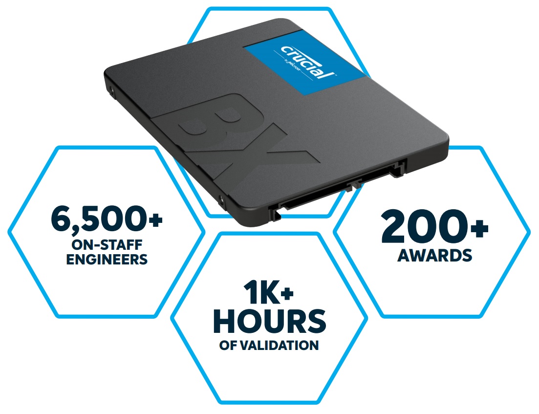 Micron® - Chất lượng được tin tưởng nhất thế giới Là một thương hiệu của Micron - một trong những nhà sản xuất bộ nhớ flash lớn nhất trên thế giới trong hơn 35 năm, ổ cứng SSD Crucial BX500 3D NAND Sata III được trang bị những công nghệ về bộ nhớ lưu trữ tiên tiến nhất trên thế giới với độ tin cậy kéo dài suốt nhiều thập kỉ. Với hơn một ngàn giờ thử nghiệm và hàng trăm bài kiểm tra chất lượng trước khi xuất xưởng. Ổ cứng SSD Crucial BX500 3D NAND Sata III sẽ mang đến cho bạn một sản phẩm với chất lượng mà bạn có thể tin tưởng tuyệt đối. |