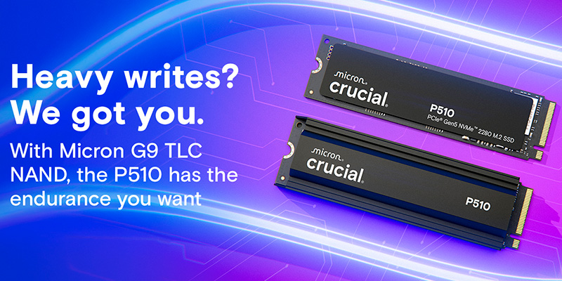 Hiểu rõ nhu cầu của người dùng chuyên nghiệp thường xuyên phải xử lý dữ liệu lớn, Crucial P510 được xây dựng dựa trên công nghệ chip nhớ Micron G9 TLC NAND tiên tiến. Công nghệ này không chỉ đảm bảo hiệu suất cao mà còn tối ưu hóa độ bền cho các tác vụ ghi dữ liệu cường độ cao (Heavy writes). Với chỉ số độ bền đạt 1200 TBW (Total Bytes Written), bạn có thể yên tâm thực hiện các công việc sáng tạo nội dung, biên tập video hay chơi game liên tục mà không lo ngại về tuổi thọ của ổ cứng.