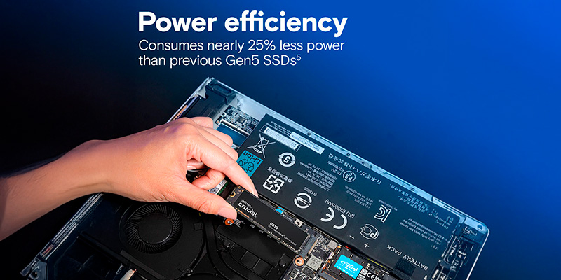 Không chỉ mạnh mẽ, Crucial P510 còn là một giải pháp lưu trữ xanh và hiệu quả. Ổ cứng này tiêu thụ ít hơn gần 25% điện năng so với các dòng SSD Gen5 thế hệ trước, giúp laptop của bạn hoạt động mát mẻ hơn và kéo dài thời lượng pin. Sản phẩm được thiết kế để tương thích hoàn hảo với các dòng laptop và máy tính để bàn hỗ trợ Gen5, giúp người dùng dễ dàng nâng cấp để "đi tắt đón đầu" xu hướng công nghệ lưu trữ tương lai.