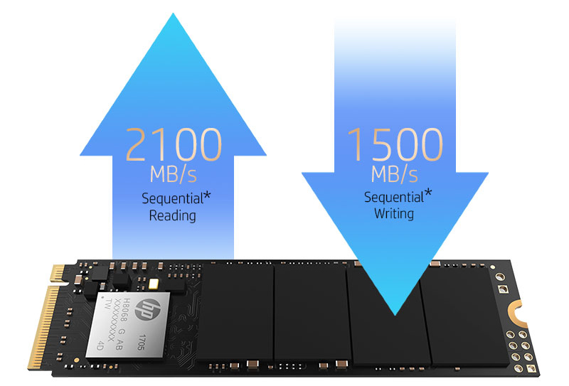 Tốc độ cực nhanh - không có độ trễ Tốc độ đọc và ghi của SSD HP EX900 PCIe Gen3 x4 NVMe lần lượt đạt 2100MB/s và 1500MB/s (test trên phiên bản 500GB), đảm bảo tốc độ nhanh và hiệu quả cao, giúp tăng tốc tổng thể cho hệ thống PC, cho phép PC khởi động, load các chương trình và tải tệp trong vài giây. |