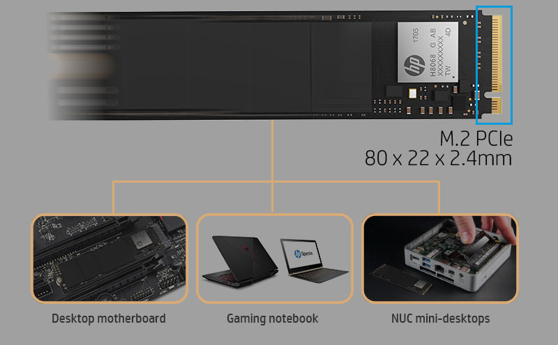 A New Configuration for Gaming Platform Ổ cứng SSD HP EX900 PCIe Gen3 x4 NVMe tương thích với kiến trúc bo mạch chủ Gaming mới và là giải pháp nâng cấp máy tính xách tay Gaming hợp lý nhất, cải thiện hiệu suất và tăng tốc khởi động trò chơi của bạn lên mức tối đa. |