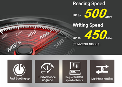 Tốc độ cao Ổ cứng SSD Kingmax SMV32 với tốc độ lên đến 500MB/s sẽ đáp ứng hầu hết các nhu cầu của bạn, cho dù bạn là văn phòng, đồ họa hay Gaming, ổ cứng SSD Kingmax SMV32 sẽ luôn đáp ứng đầy đủ. |