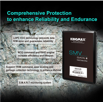 Công nghệ tiên tiến Ổ cứng SSD Kingmax SMV32 được trang bị tất cả các công nghệ tiên tiến nhất hiện nay như LDPC ECC, NCQ, TRIM và S.M.A.R.T... |