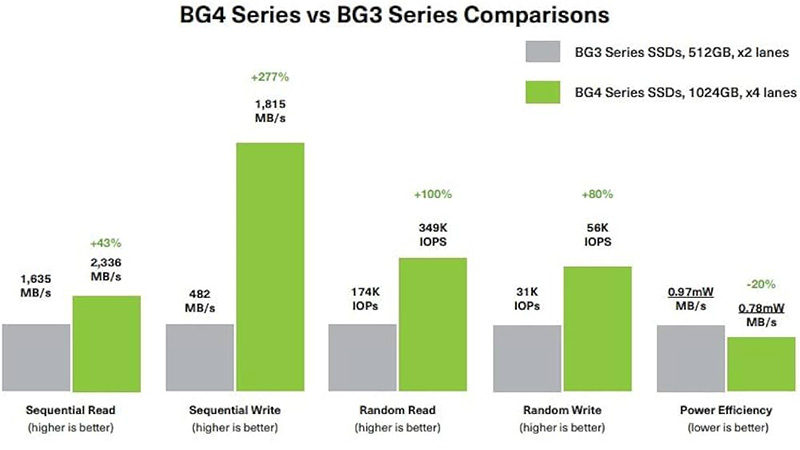Với tốc độ đọc và ghi liên tiếp lên đến 2200 MB/s và 1400MB/s, ổ cứng SSD Kioxia BG4 M.2 2230 PCIe Gen3 x4 BiCS FLASH sẽ giúp nâng cao tối đa hiệu suất nhằm giúp PC của bạn đáp ứng mọi nhu cầu của các trò chơi, ứng dụng và phần mềm đòi hỏi khắt khe nhất về phần cứng.