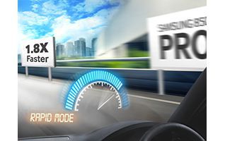 Chế độ RAPID Mode - Tăng hiệu suất cực kì cao Bạn có thể tăng hiệu suất đọc/ghi với chế độ Samsung RAPID Mode. Cũng giống như cơ cấu chuyển động trong một chiếc xe, phần mềm Magician có các tùy chọn để nâng cao hiệu suất xử lý dữ liệu bằng cách sử dụng bộ nhớ máy tính không sử dụng (DRAM) như một bộ nhớ cache, cung cấp hiệu suất nhanh hơn 1,8 lần ở chế độ RAPID. |