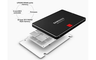 Công nghệ Samsung 64 Layer 3D V-NAND Bộ nhớ flash của Samsung được chế tạo bằng cách sử dụng một công nghệ cấu trúc độc quyền 3D V-NAND sắp xếp 64 lớp Cell chồng lên nhau. Kết quả là mật độ Cell sẽ cao hơn và hiệu suất sẽ tăng cao hơn bằng cách sử dụng một FootPrint nhỏ hơn, đây là một bước đột phá trong việc khắc phục những hạn chế mật độ Cell của công nghệ NAND phẳng thông thường. Kết hợp thêm công nghệ Intelligent TurboWrite mới được cải tiến so với thế hệ trước giúp ít tiêu hao TBW, cho độ bền được gia tăng tối đa. |