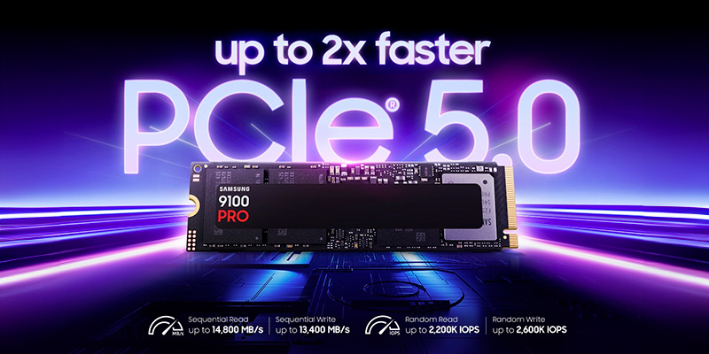 SSD Samsung 9100 Pro 4TB PCIe Gen 5.0 x4 NVMe MZ-VAP4T0BW sở hữu tốc độ đọc lên đến 14.800MB/s và ghi 13.400MB/s, chuẩn giao tiếp NVMe™ 2.0 hiện đại, tối ưu cho gaming, sáng tạo nội dung và xử lý công việc chuyên sâu.