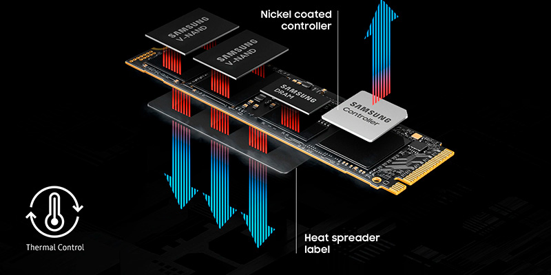 Ổ cứng trang bị bộ nhớ Samsung V-NAND TLC bền bỉ cùng bộ điều khiển do Samsung sản xuất in-house, đi kèm bộ nhớ đệm DDR4X 1GB giúp tăng tốc độ truy xuất dữ liệu. Nhờ đó, SSD 9100 Pro hoạt động ổn định kể cả khi xử lý nhiều tác vụ nặng hoặc chơi game AAA.