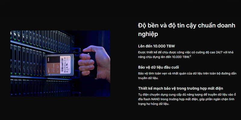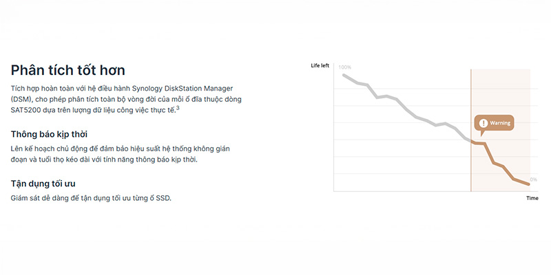 Sản phẩm nổi bật với công nghệ Power Loss Protection (PLP), sử dụng các tụ điện tích hợp để đảm bảo dữ liệu chưa kịp ghi vào NAND sẽ không bị mất trong trường hợp mất điện đột ngột. Điều này đặc biệt quan trọng trong môi trường doanh nghiệp cần sự toàn vẹn dữ liệu tuyệt đối như tài chính, bảo mật, hệ thống lưu trữ ảnh camera hoặc các dịch vụ đám mây nội bộ. Bên cạnh đó, Synology SAT5221-480G được quản lý dễ dàng thông qua phần mềm DSM, giúp người quản trị dễ dàng theo dõi tình trạng từng ổ, lập lịch bảo trì và cảnh báo kịp thời khi phát hiện sự cố tiềm ẩn, giúp tiết kiệm thời gian và chi phí bảo trì.