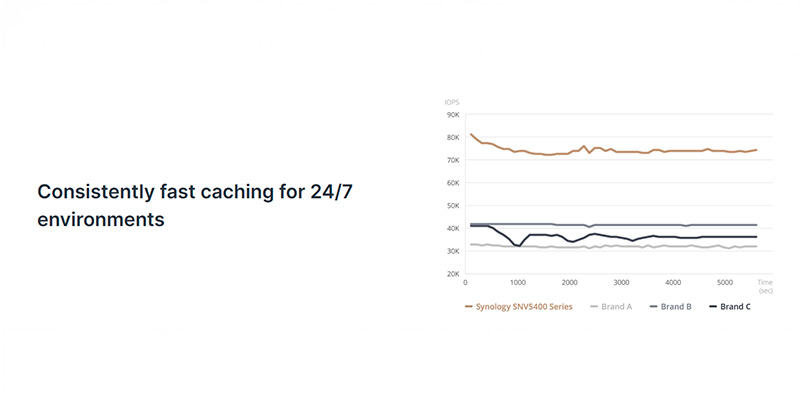 Khi được sử dụng như một SSD cache cho hệ thống NAS Synology, Synology Enterprise Series SNV5400 800GB PCIe Gen3 x4 NVMe M.2 SNV5420-800G giúp giảm đáng kể thời gian truy cập dữ liệu, tăng tốc độ phản hồi cho các tác vụ chia sẻ file, máy ảo, và ứng dụng doanh nghiệp. Với độ trễ thấp và khả năng ghi ngẫu nhiên vượt trội, sản phẩm này hỗ trợ các doanh nghiệp xây dựng hệ thống lưu trữ hiệu quả hơn mà không cần đầu tư quá nhiều vào bộ nhớ DRAM đắt tiền. Đây là giải pháp lý tưởng cho các mô hình SMB và enterprise đang sử dụng NAS Synology như DS1522+, DS923+,... hoặc các dòng cao hơn trong môi trường đòi hỏi tốc độ cao.