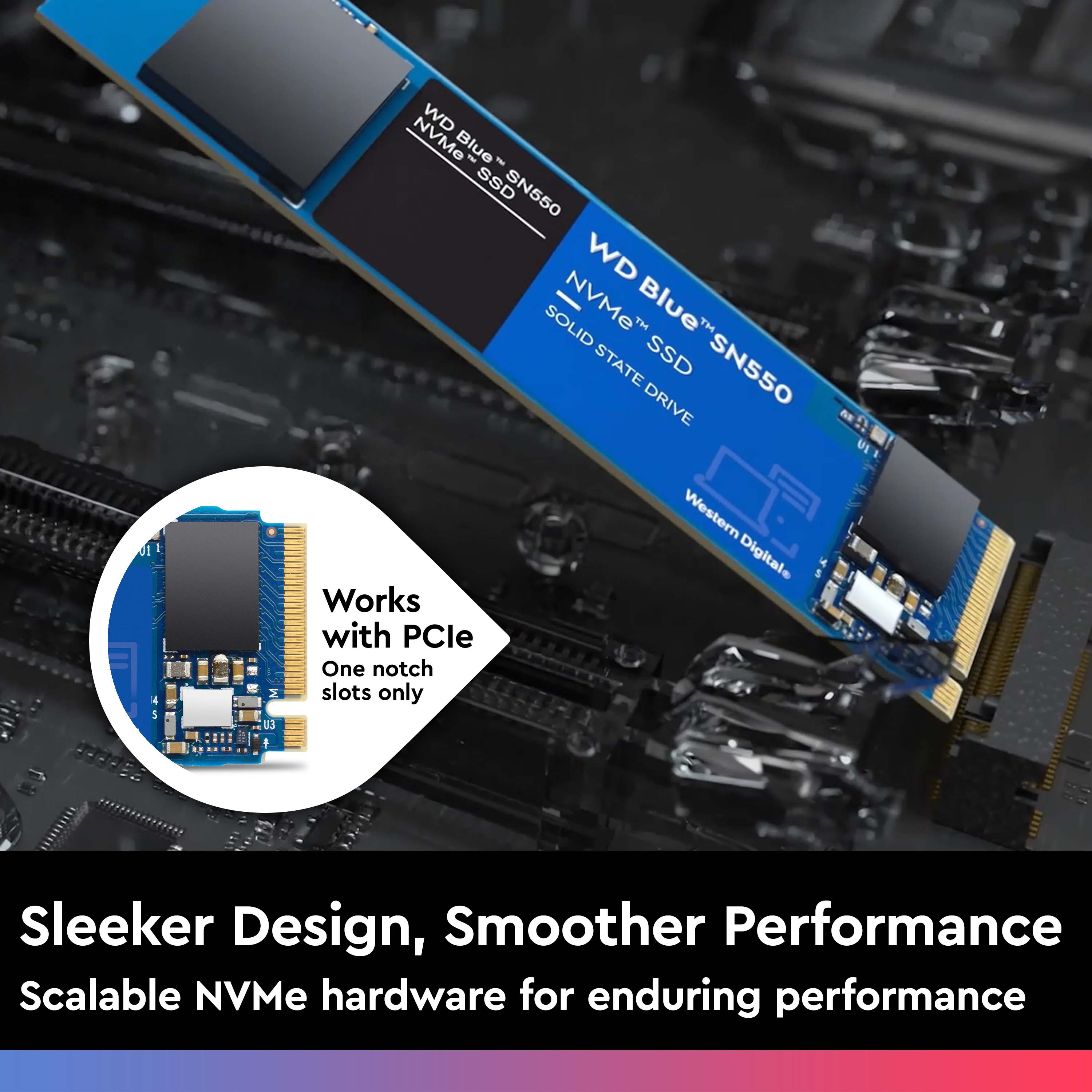 Sự lựa chọn tốt nhất Ổ cứng SSD WD Blue SN550 được trang bị công nghệ PCIe Gen3 x4 NVMe, đây là công nghệ đi đầu về giải pháp lưu trữ hiện nay, mang đến hiệu quả về chi phí và làm tăng thêm độ tin cậy của SSD. |