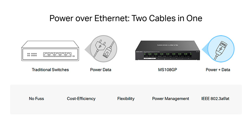 Công nghệ PoE+ hỗ trợ cấp nguồn lên đến 30W mỗi cổng