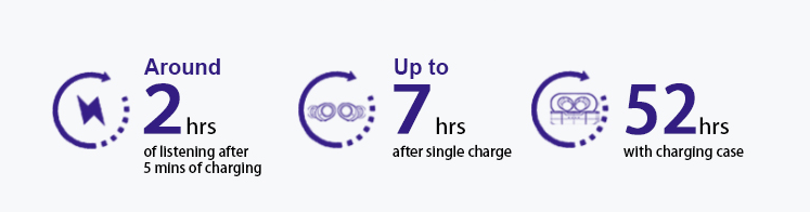 Kết nối dễ dàng, thời gian sử dụng lâu Evo X1 sẽ tự động ghép nối liền mạch với các thiết bị Bluetooth của bạn mà không cần thực hiện thêm bất kỳ thao tác nào khi bạn tháo tai nghe không dây khỏi hộp sạc. Ngoài ra bạn có thể thoải mái hơn với thời lượng lên đến 7 giờ cho một lần sạc. Thêm vào đó, hộp sạc tiện dụng cung cấp cho bạn tổng thời lượng pin lên đến 52 giờ với chỉ 2 giờ sạc. |