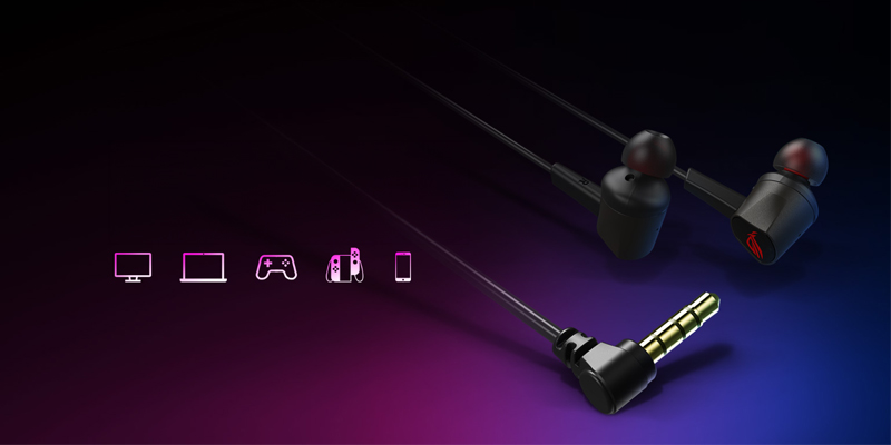 ROG Cetra II Core đi kèm với dây cáp có đầu cắm thiết kế góc 90°, giữ cho cáp tai nghe không bị vướng, tăng sự thoải mái đáng kể khi chơi game di động.
