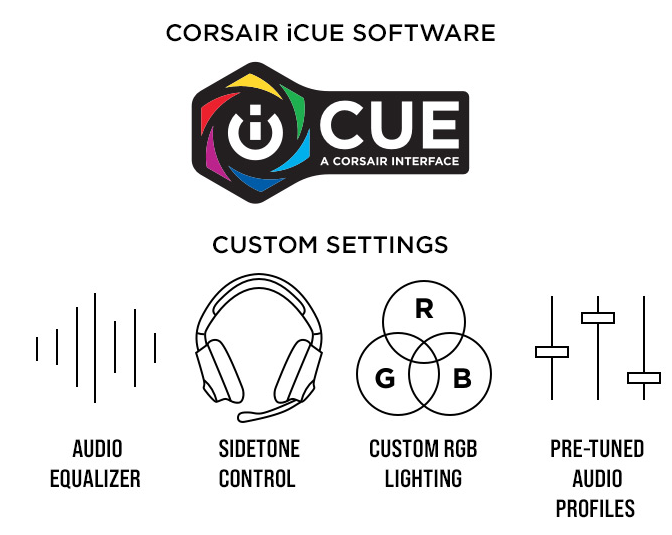 Phần mềm iCUE Phần mềm iCUE cho phép điều khiển tai nghe của bạn với cấu hình âm thanh được cài đặt sẵn trước. Cài đặt bộ cân bằng tùy chỉnh, âm thanh 7.1 Surround và điều khiển âm thanh phụ. Tùy chỉnh ánh sáng RGB của bạn.