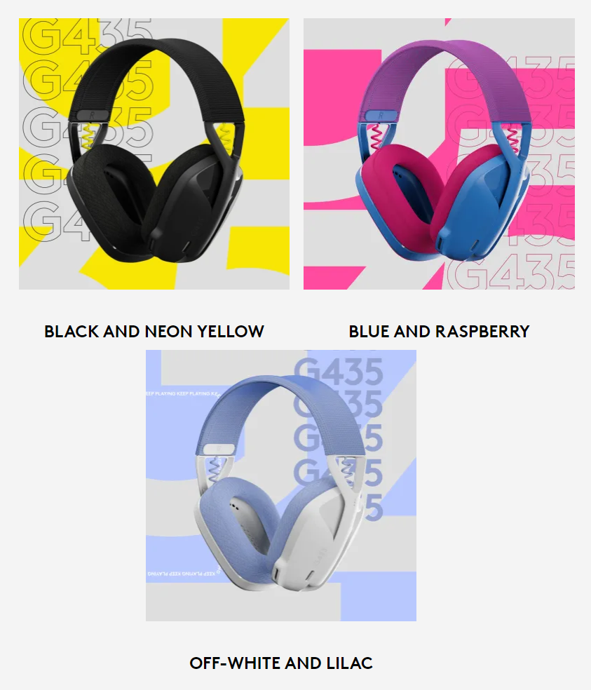 Thoải mái với nhiều phong cách Tai Nghe Gaming không dây Logitech Lightspeed G435 gồm ba kiểu màu sắc khác nhau để bạn lựa chọn một màu phù hợp với phong cách của bạn. |